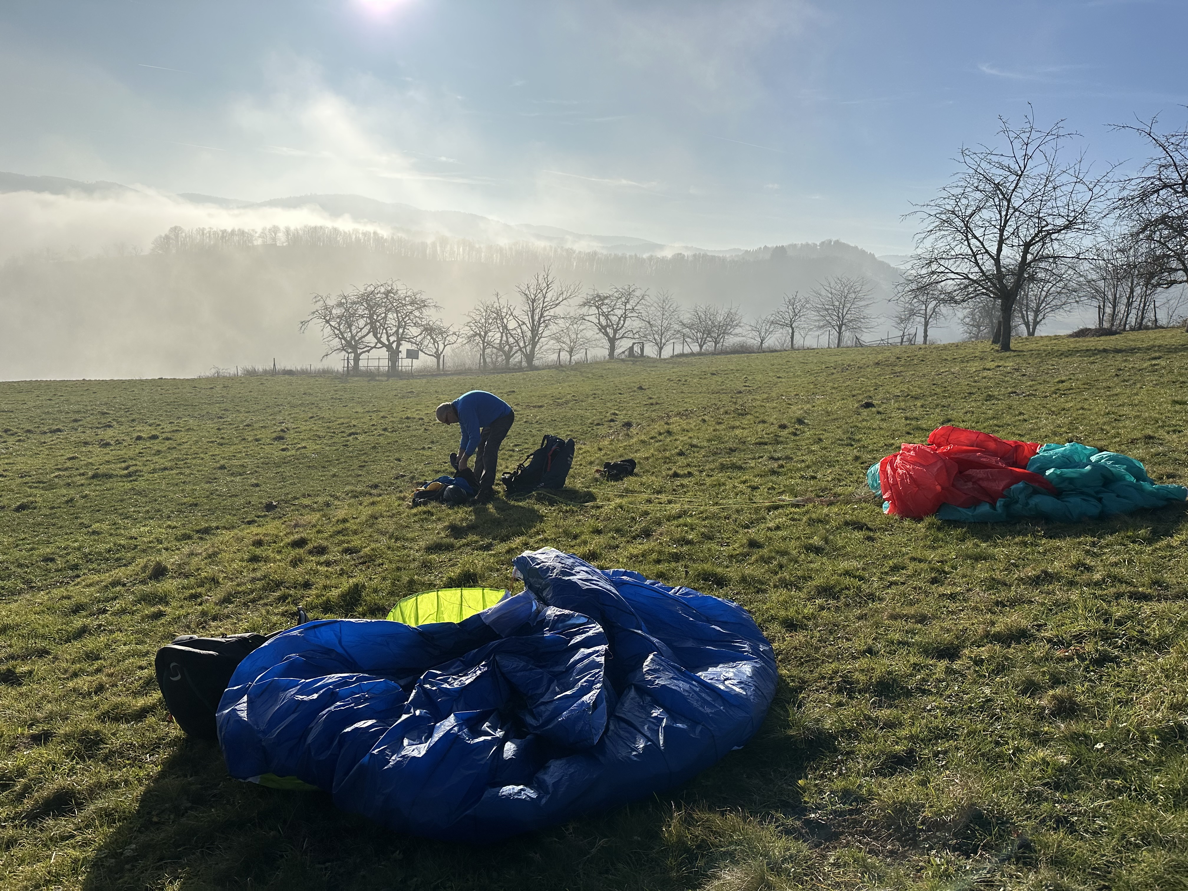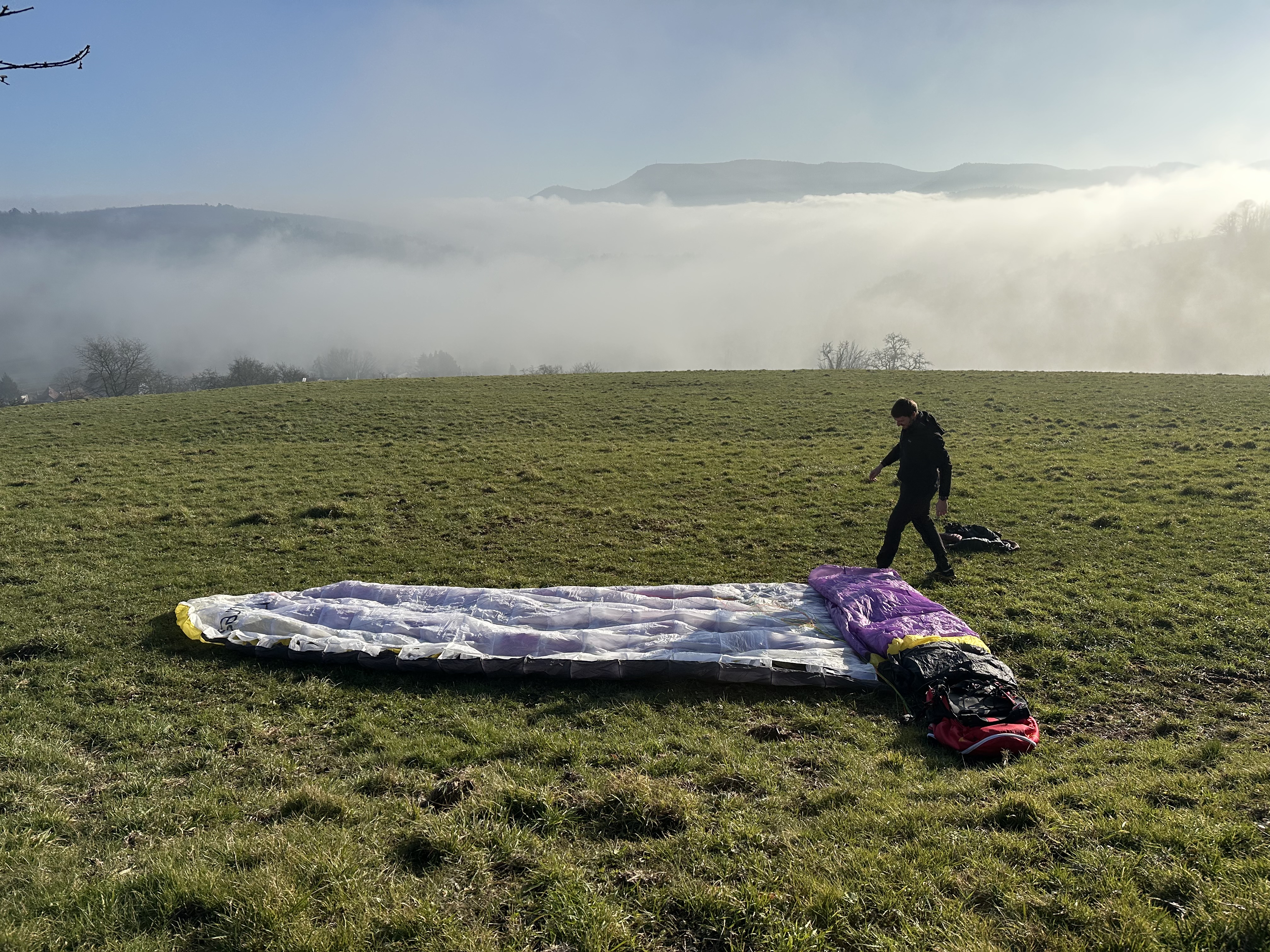 Ça fait du bien ce soleil.. un vrai plouf au soleil. Fallait pas traîner. À 15h15 l’atterrissage était dans le brouillard.