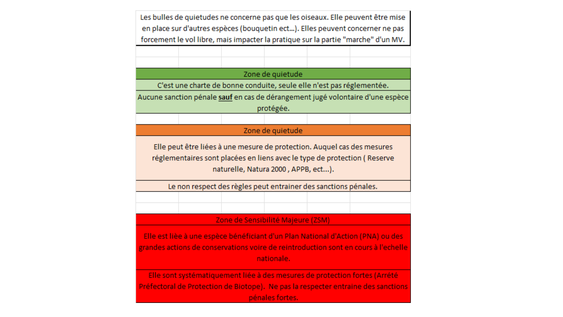 Petit recap sur les zone de quiétude. Pour les sites, les images risquent de prendre de la place. Je vais surement le faire en plusieurs messages.