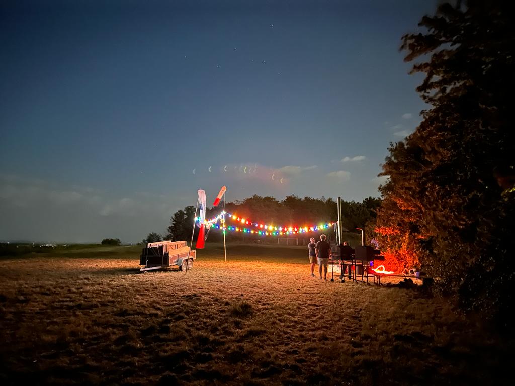 Un soirée bien sympa avec un coucher de soleil splendide et qui s'est terminée avec l'envol des chandelles !