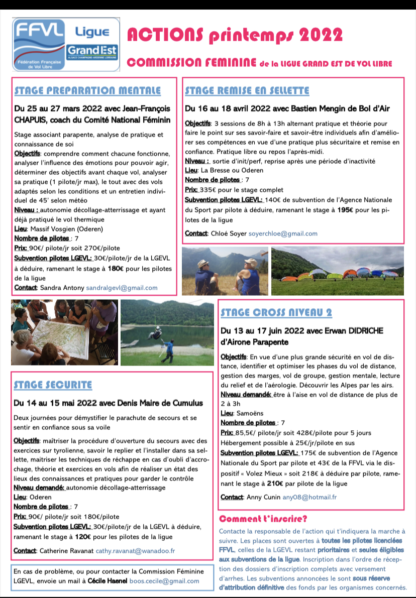 je vous relaie le programme des actions d'automne de la commission féminine de vol libre du Grand Est