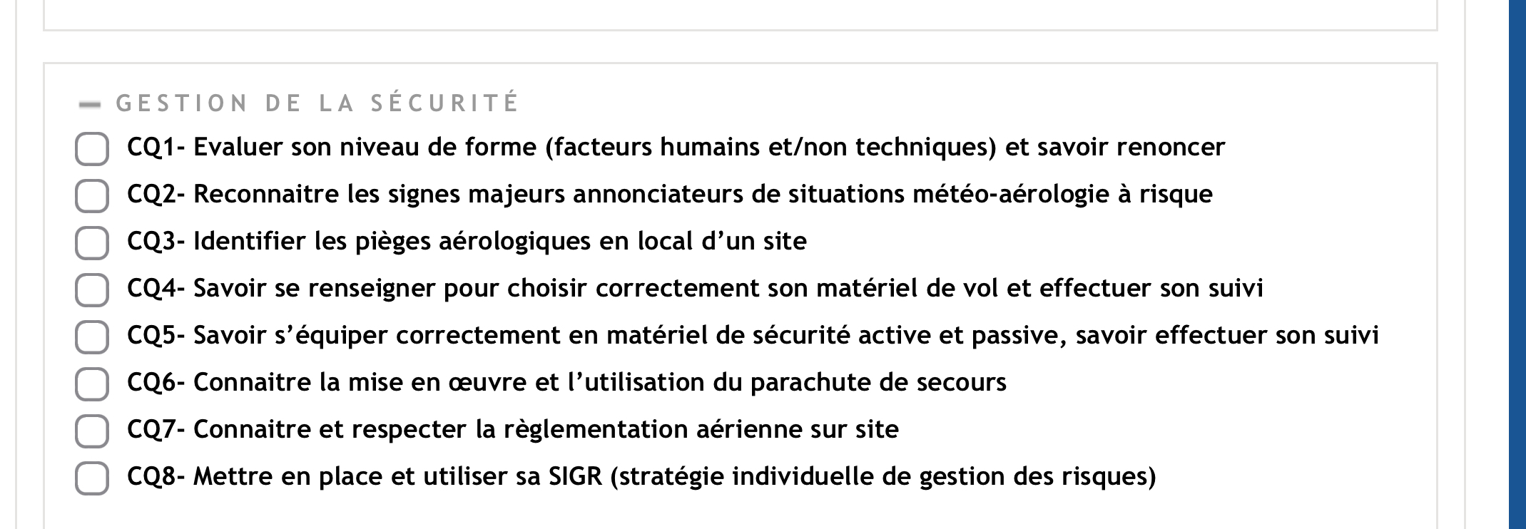 - Dimanche 8/12 à 08h30 : Caveau => cours théoriques (matin) + pliage de secours pilote (après-midi)